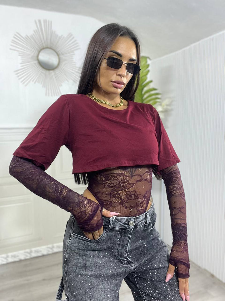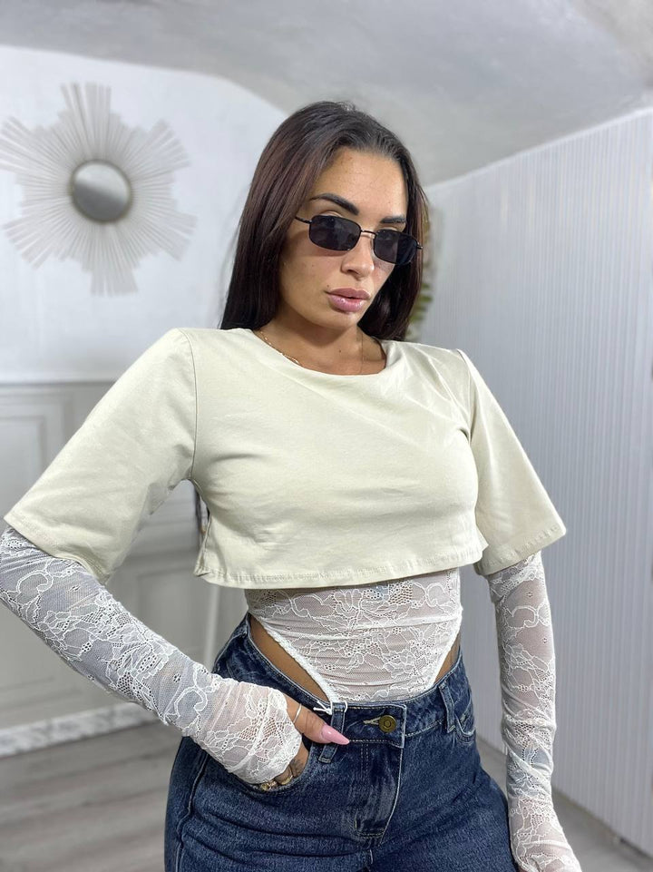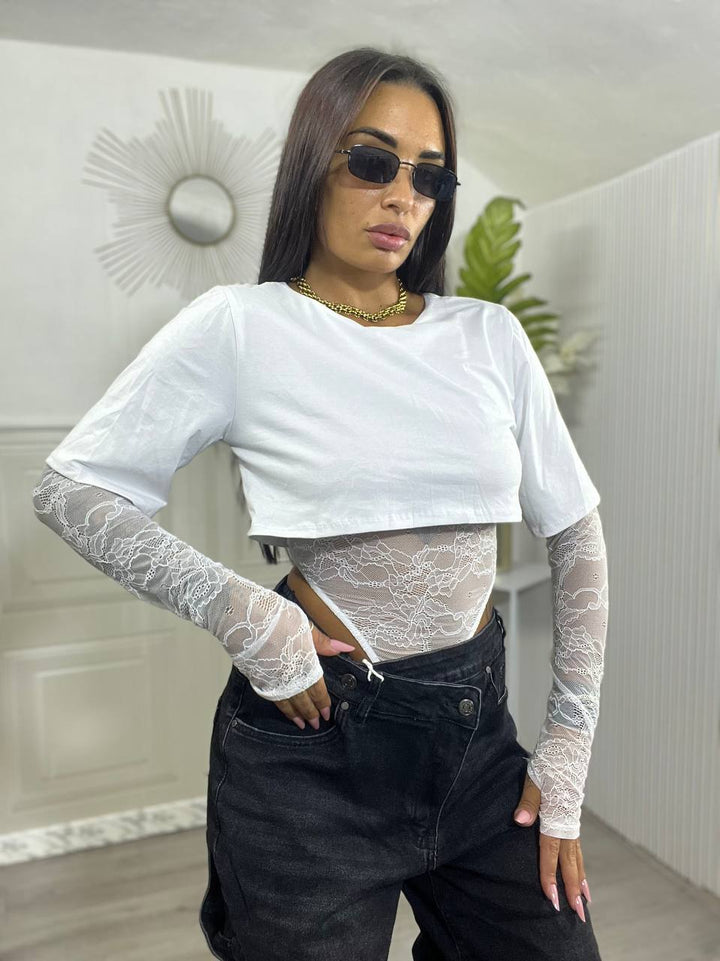 BODY IN PIZZO CON T-SHIRT