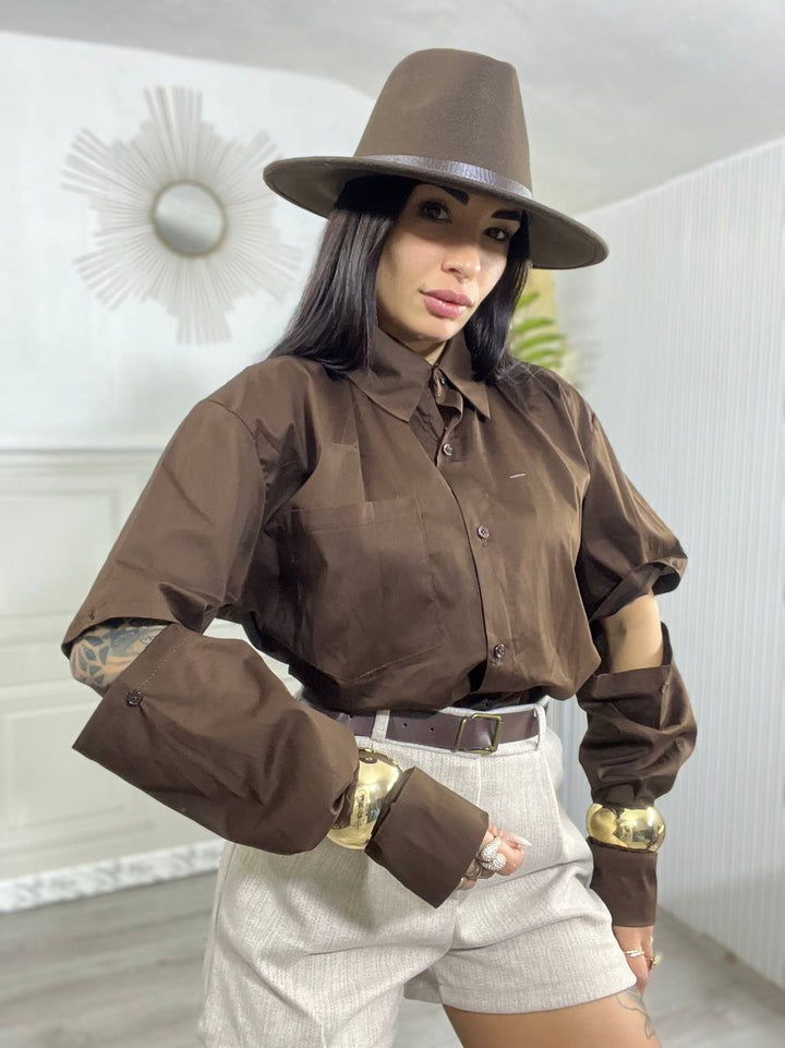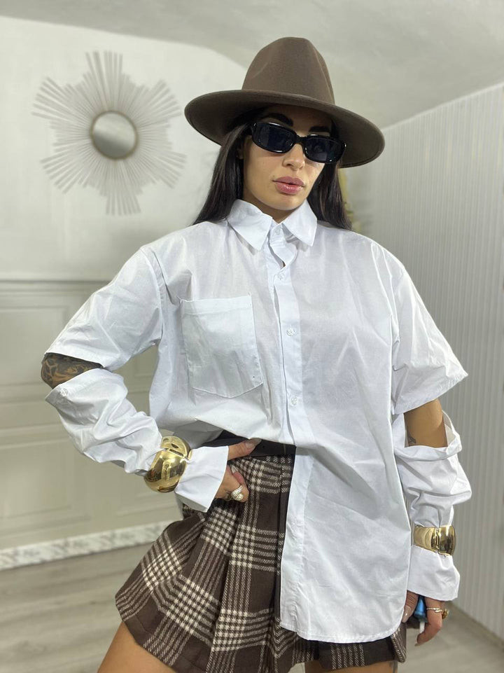 CAMICIA TINTA UNITÀ CON MANICHE REMOVIBILI