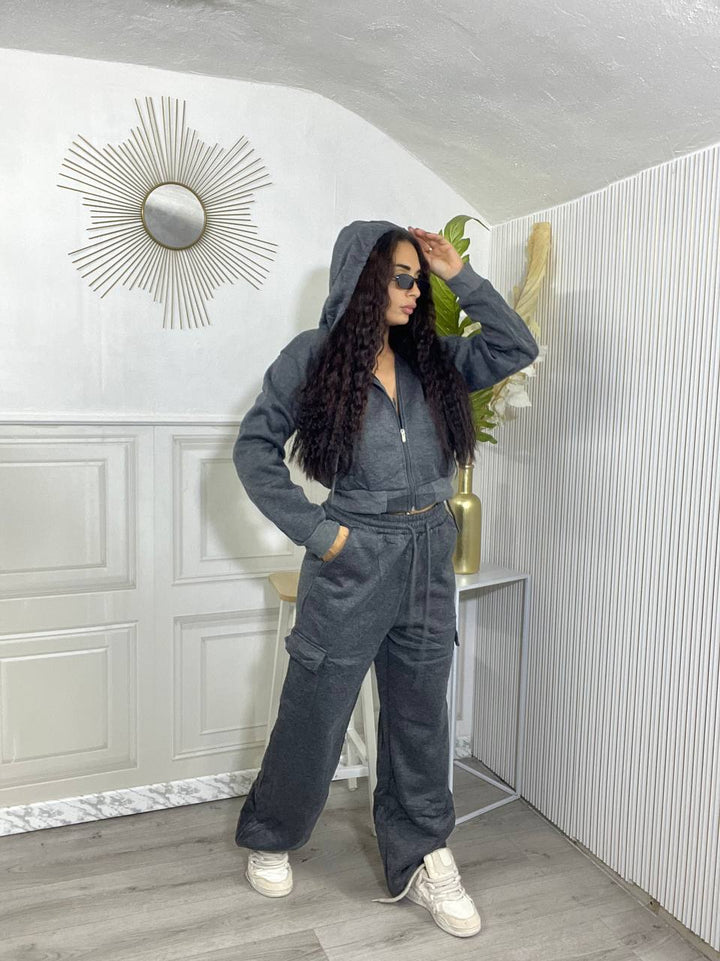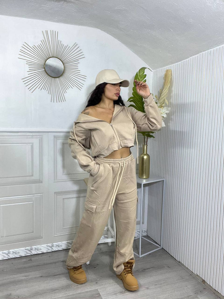 CORDSET TUTA CON FELPA CROP E PANTATUTA CARGO
