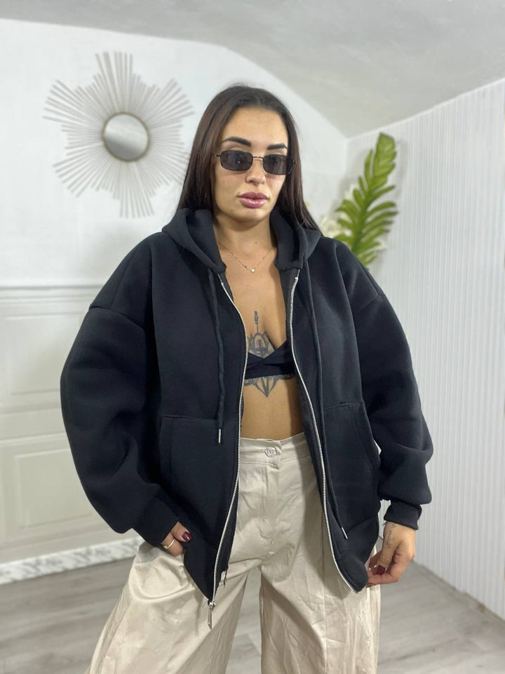 FELPA CON ZIP E CAPPUCCIO