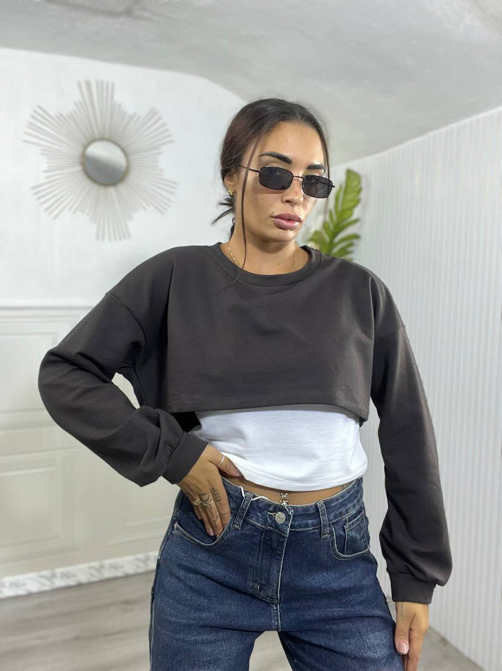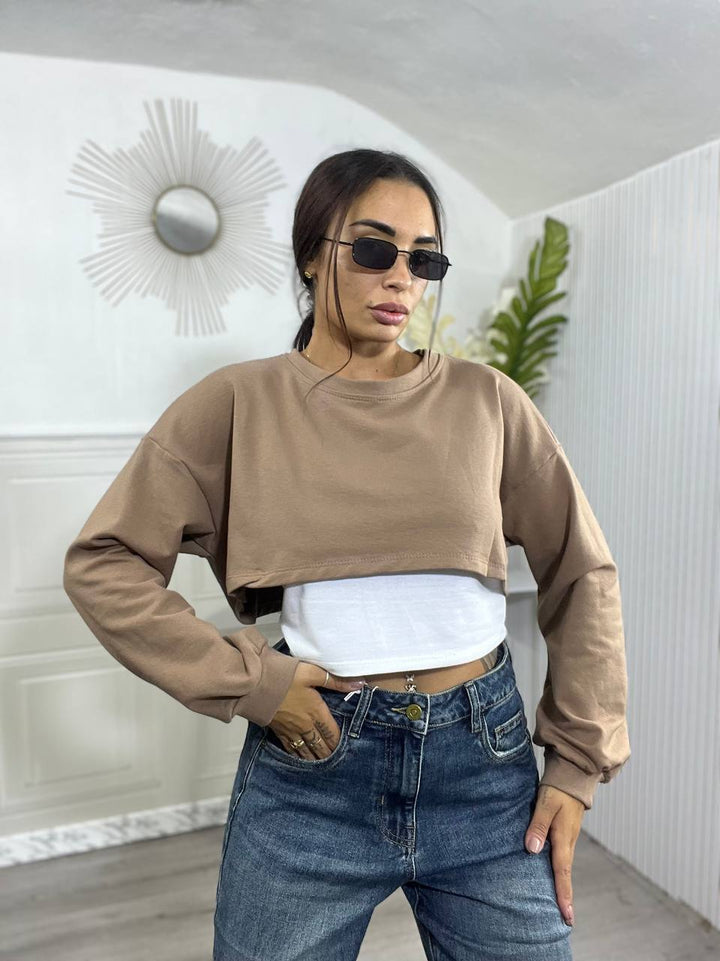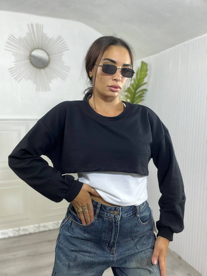 FELPA CROP CON SHIRT CHE FUORIESCE