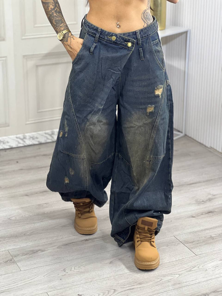 JEANS SABBIATO CON CHIUSURA TRASVERSALE