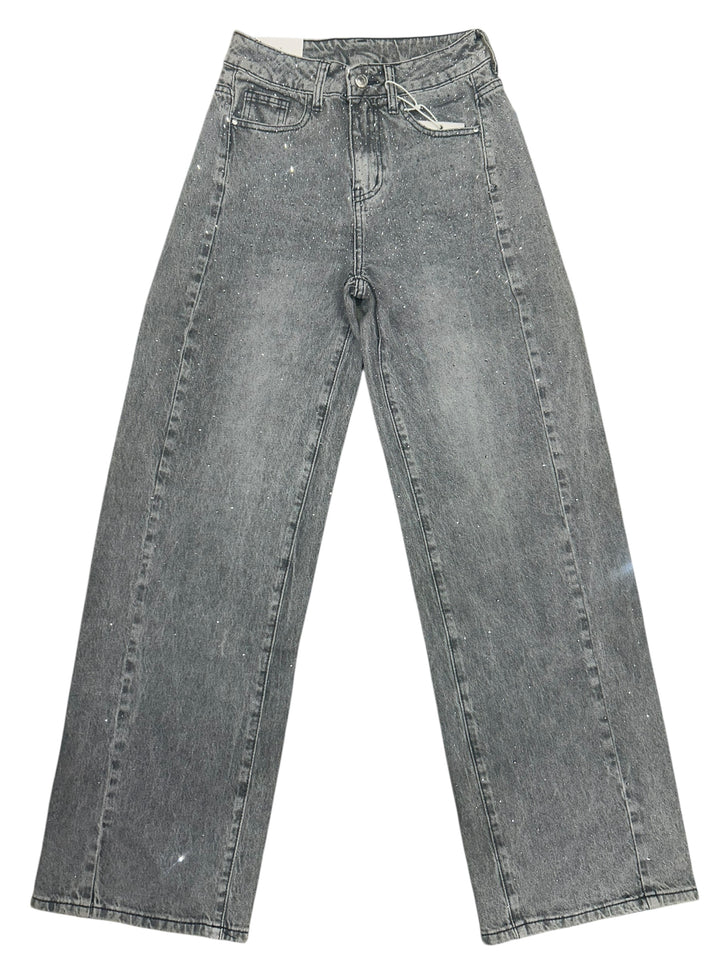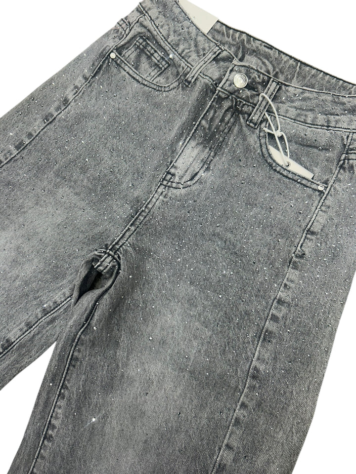 JEANS GRIGIO CON BRILLANTINI A PALAZZO