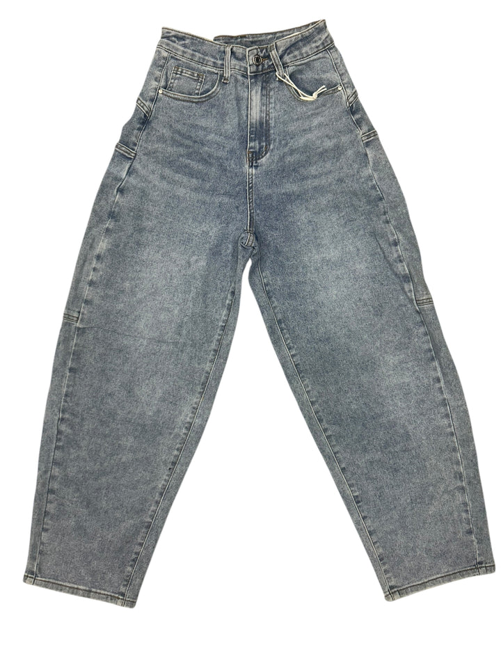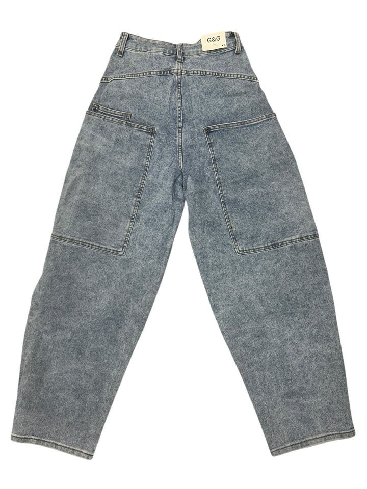 JEANS CHIARO BALLON ELASTICO CON TASCONI PARTICOLARI SUL RETRO