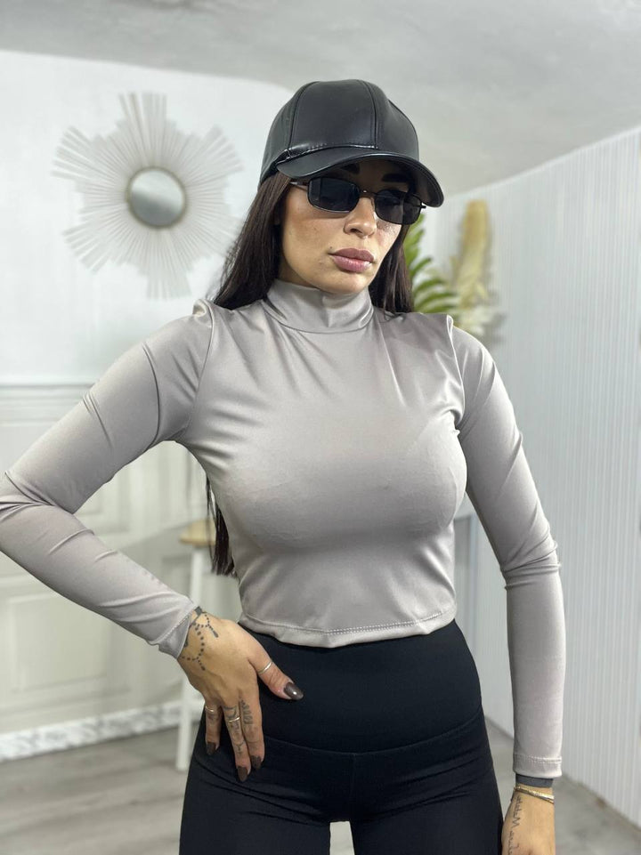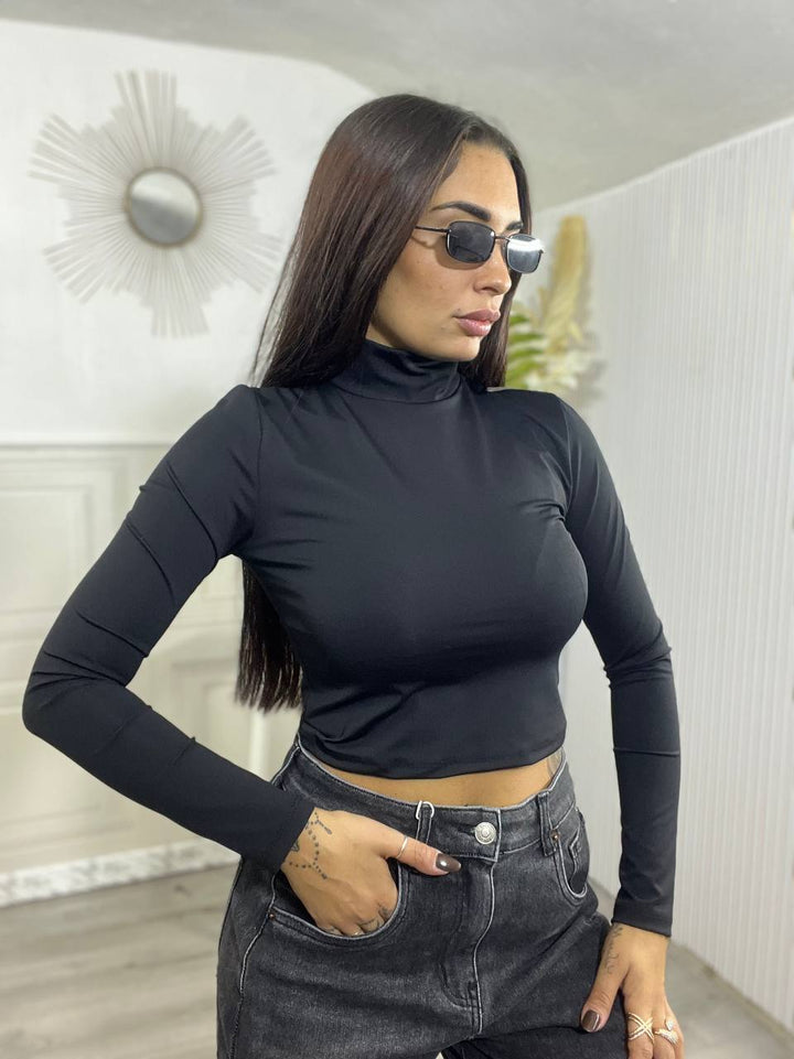 MAGLIA CROP IN LYCRA COLLO ALTO