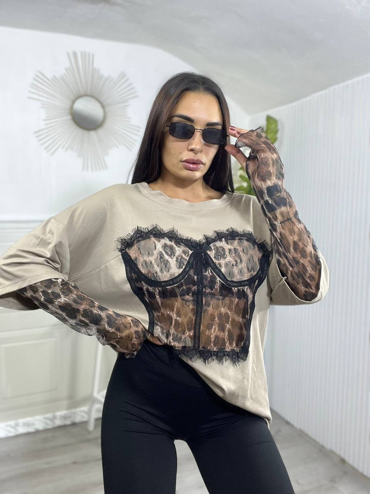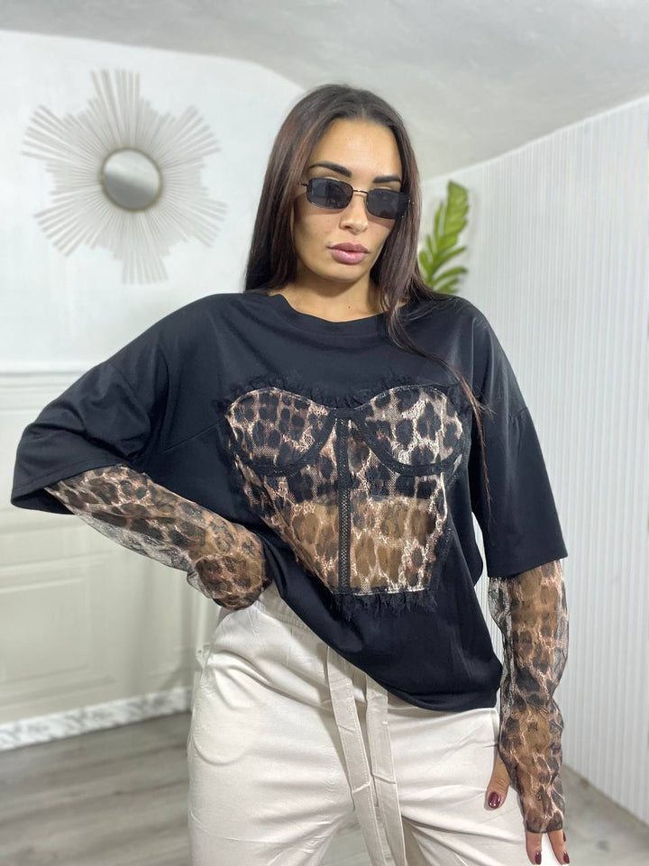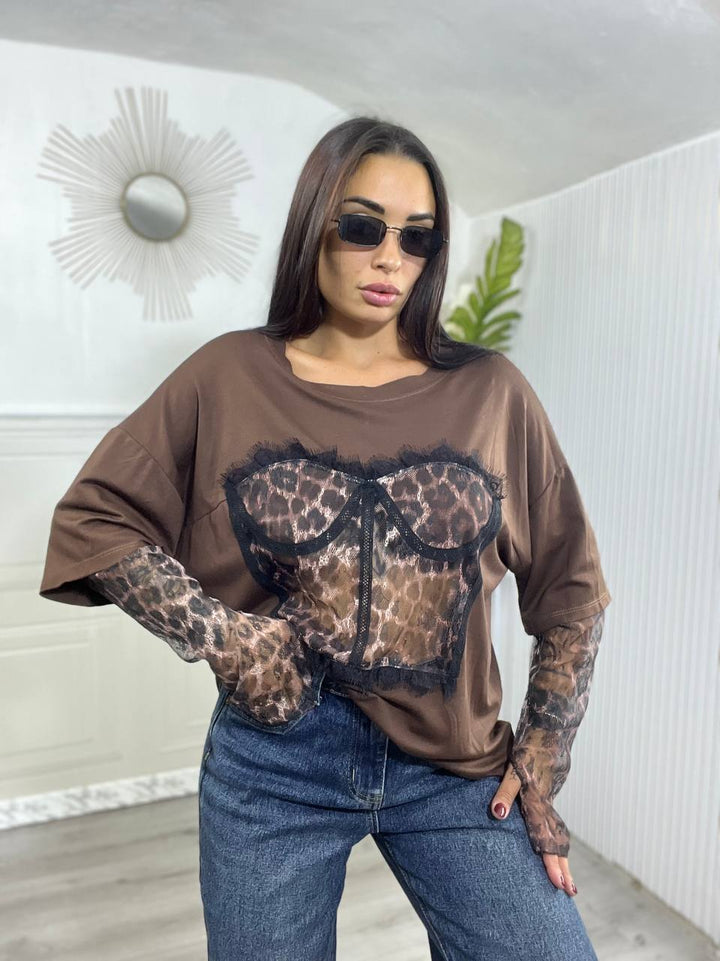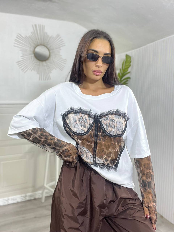 T-SHIRT CORSAGE CON MANICHE MACULATE