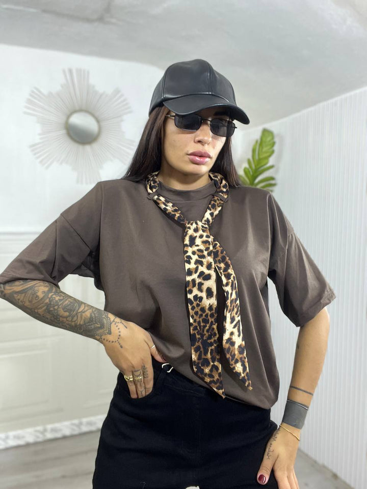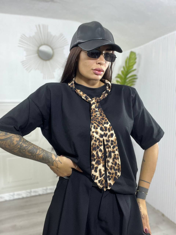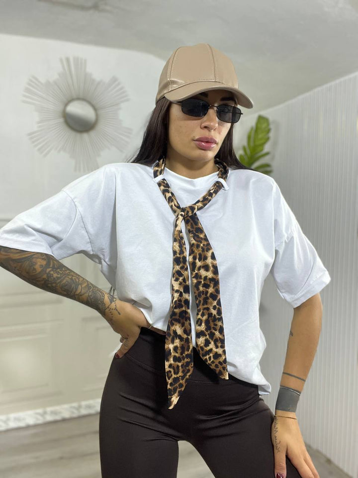 T-SHIRT CON SPALLINE E FOULARD MACULATO
