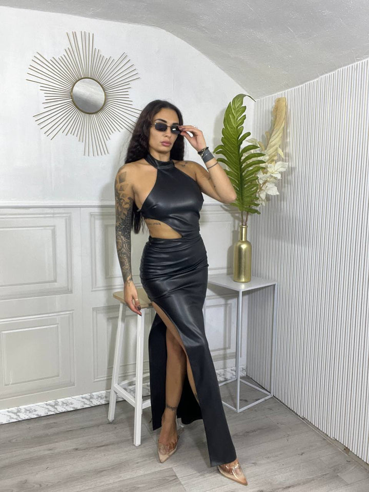 VESTITO LUNGO IN ECOPELLE